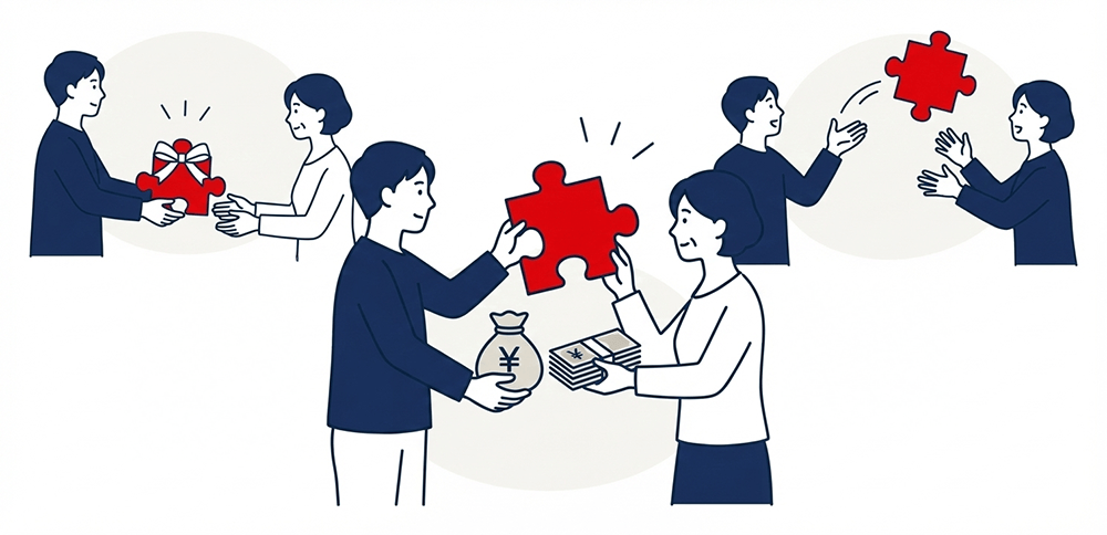 お金のやり取りなしで、持分を相手にあげる方法です。親子や夫婦間では「家族なんだからお金はいらないよ」となることが多いため、この方法がよく検討されます。ただし、ここで注意が必要です。「タダでもらう」ということは、そこに「贈与税」が発生する可能性があります。「お金は動かないけれど、税金は発生するかもしれない」。この点はしっかりとシミュレーションしておく必要があります。