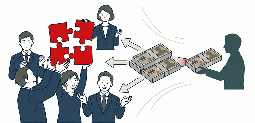 共有者から持分を買い取る(購入)通常の不動産取引と同じで、きちんとお金が動くため、後々のトラブルになりにくいのが特徴です。他の共有者が他人同士の場合でも、親族間の場合でもしっかりと清算したい場合に選ばれます。